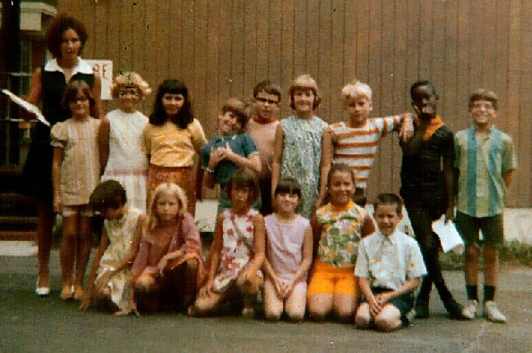 From top left: Teacher, Ann Hildebrand, Evonne (Marston) Miller, Maxine Silverman, Mike Krohngold, Jay Beningo, Ellen Knox, Kyle Evans, Stevie Jones, Ken Heinlein. From bottom left: Susan (Stinchcomb) Shaw, Caitlin (Larsen) Deer, Julia Cutino, Randi Whitehead, Carrie (Surfus) Bell, David Theetge? Circa 1969